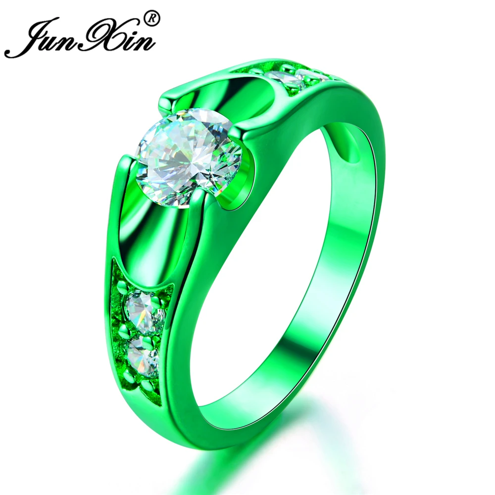 Us 2 99 40 Off Junxin Bohemian Women White Round Zircon Ring Fashion Green Gold Jewelry Vintage Punk Wedding Rings For Women Unique Ring Gifts In