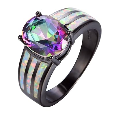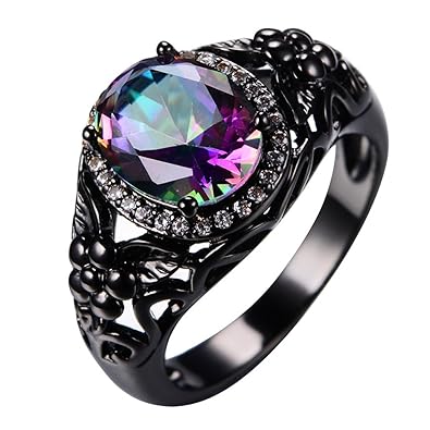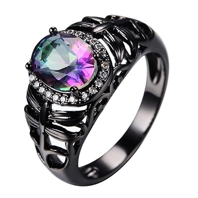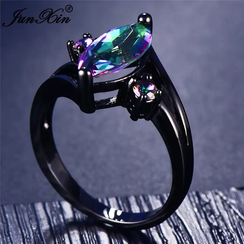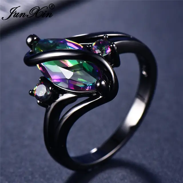 Us 1 98 40 Off 12 Color Unique Mystery Female Girls Rainbow Ring Fashion 14kt Black Gold Jewelry Bohemian Vintage Wedding Rings For Women In Wedding