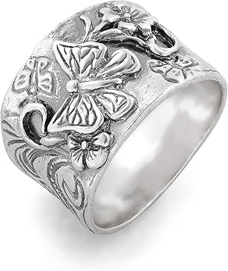 Pz Paz Creations 925 Sterling Silver Butterfly Floral Band Ring For Women Vintage Style Statement Bohemian Jewelry Gift Unique Artisan Fashion