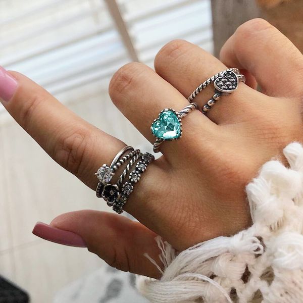 Women Ring Set Retro Boho Bohemia Style Silver Ring Set Heart Shape Women Vintage Wedding Jewelry Wholesale Factory Direct Unique Wedding Rings Mens
