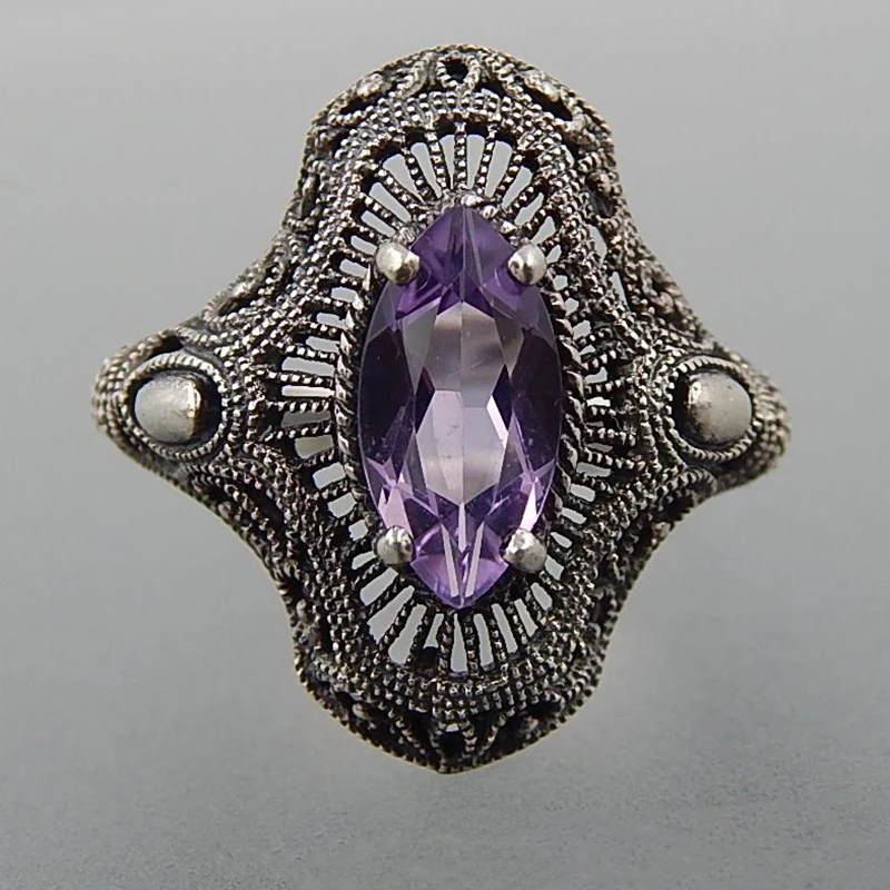 2019 Ladies Bohemian Vintage Antique Ring Fashion Silver Plated Purple Color Crystal Zircon Ring Exquisite Wedding Ring A3m411 From Qipaoliu 35 14
