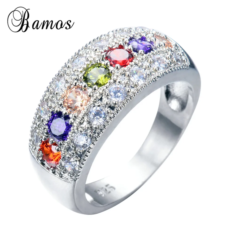 Us 2 99 40 Off Bamos Women Red Purple Ring Bohemian Rainbow Ring Fashion 925 Sterling Silver Filled Jewelry Vintage Wedding Rings For Women In