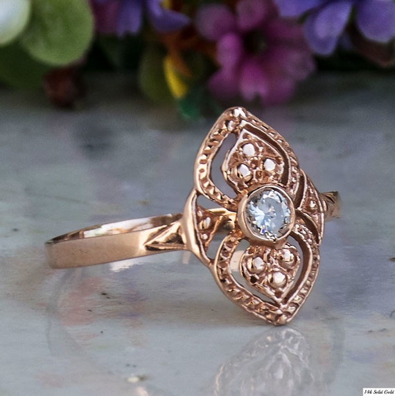 Diamond Ring Vintage Ring Unique Ring Rose Gold Ring Wedding Ring Boho Ring Elegant Ring Art Deco Ring Dainty Gold Ring Gold Jewelry