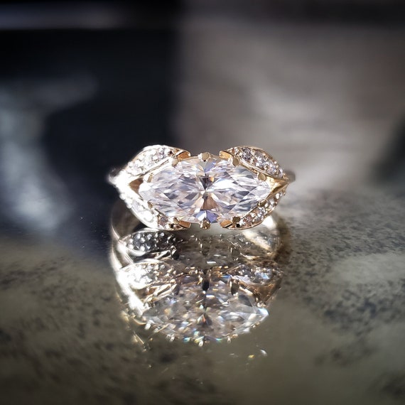 All Moissanite East West Marquise Engagement Ring Wedding Ring Yellow Gold Eye Floral Bohemian Vintage 6x12mm Ring 1 75 Carat The Lorien