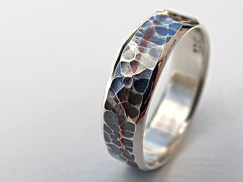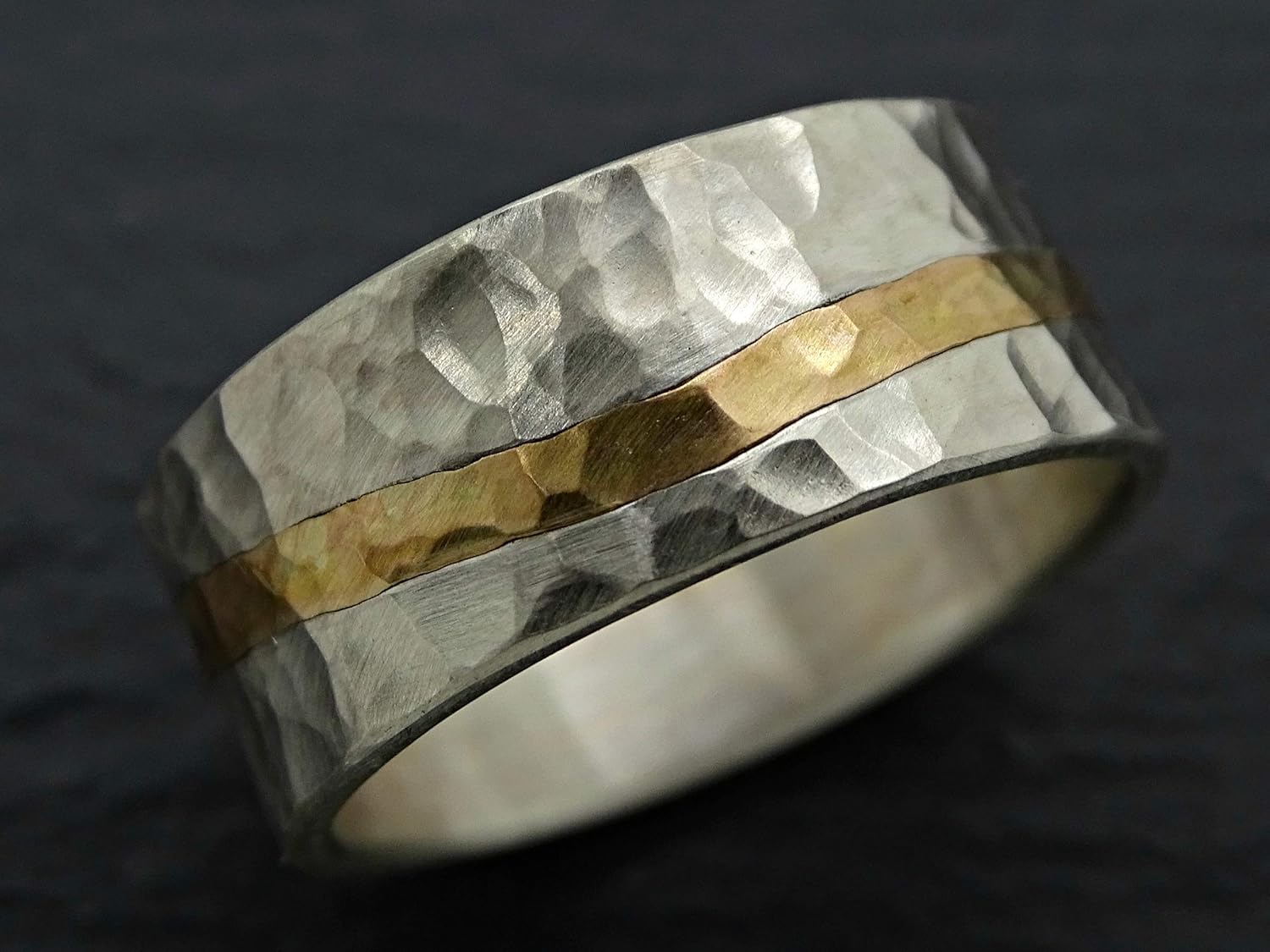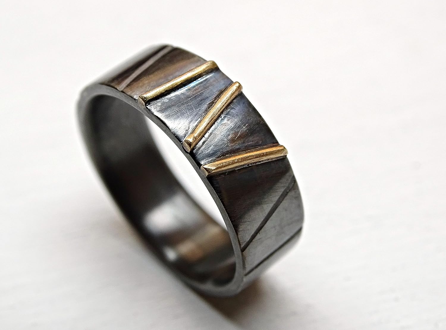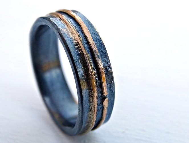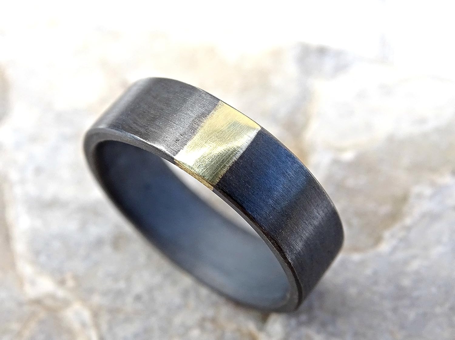 Amazon Com Mens Wedding Ring Oxidized Silver Gold Rustic