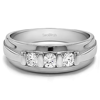 Amazon Com Twobirch Sterling Silver Unique Three Stone