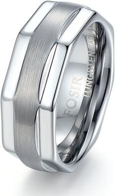 Fosir 8mm Mens Step Edge Tungsten Carbide Ring Unique Wedding Band