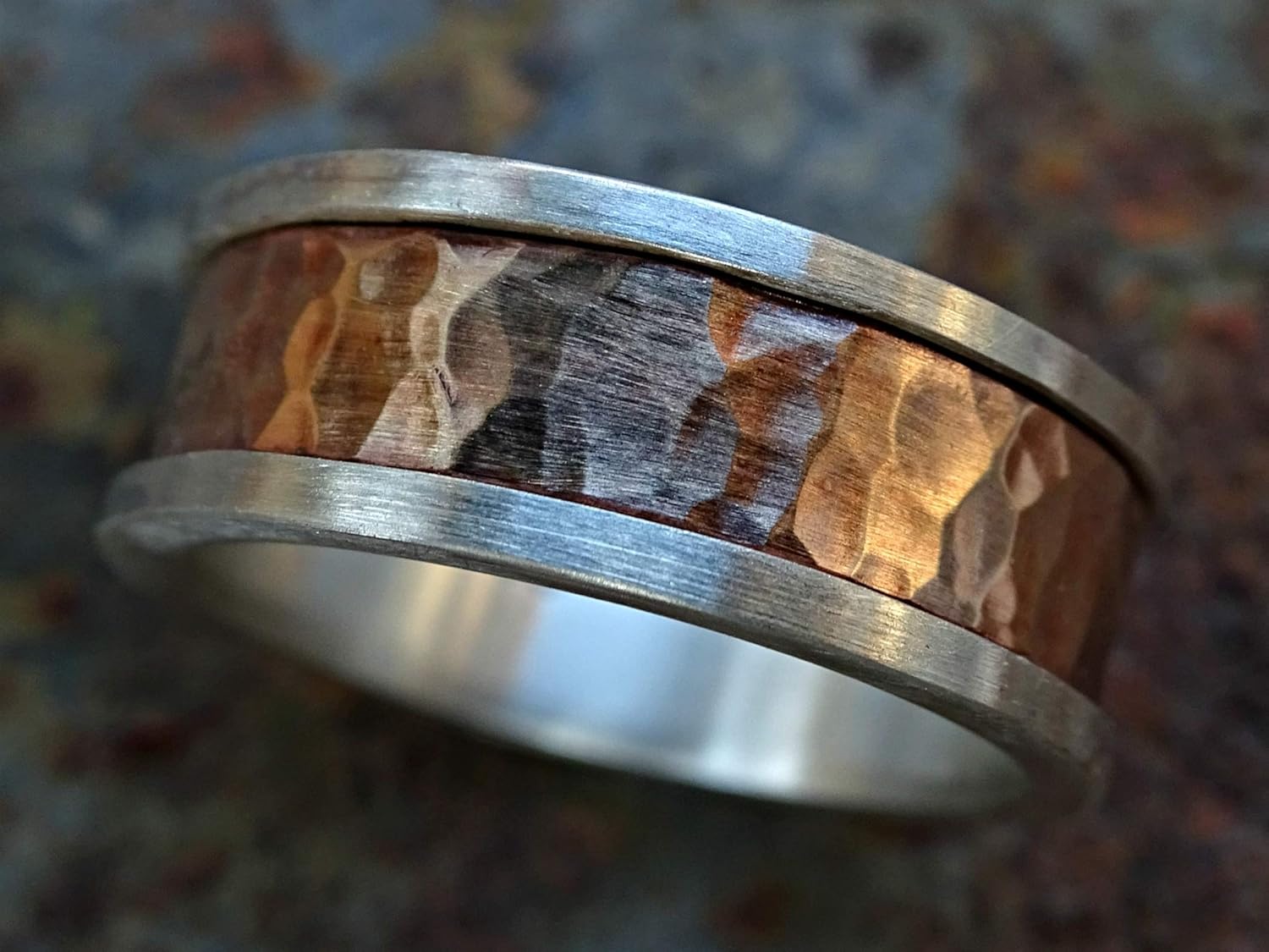 Industrial Wedding Band Men Promise Ring For Men Mens Ring Two Toned Mens Wedding Ring Mixed Metal Silver Bronze Ring Unique Mens Ring