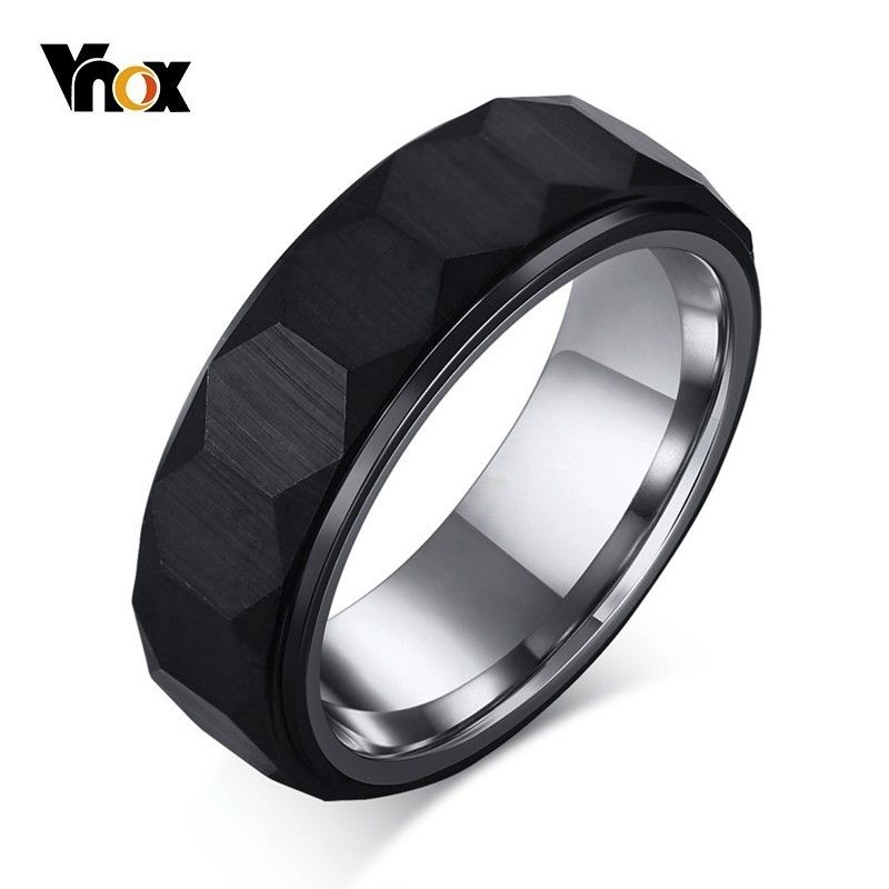 Vnox Hexagon Mens Rings Black Tungsten Carbide Unique Three Dimensional Surface Wedding Bands For Man Comfort Wear Anel Cubic Zirconia Engagement