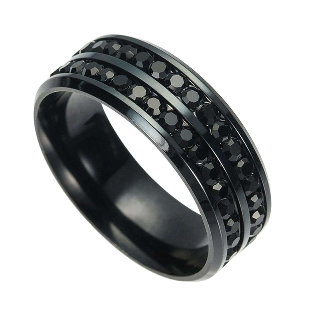 Kebaner Women Men 8mm Stainless Steel Unique Double Row Crystal Diamond Ring Wedding Band Size 7 12