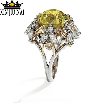 Champagne Charm Chic Flower Engagement Rings For Women Ladies Elegant Unique Yellow Zircon Wedding Rings Fashion Party Jewelry