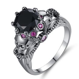 Austrian Gothic Black Gun Plated Style Retro Skull Rings For Women Black Crystal Cz Wedding Jewelry Party Trendy Love Gift Ring