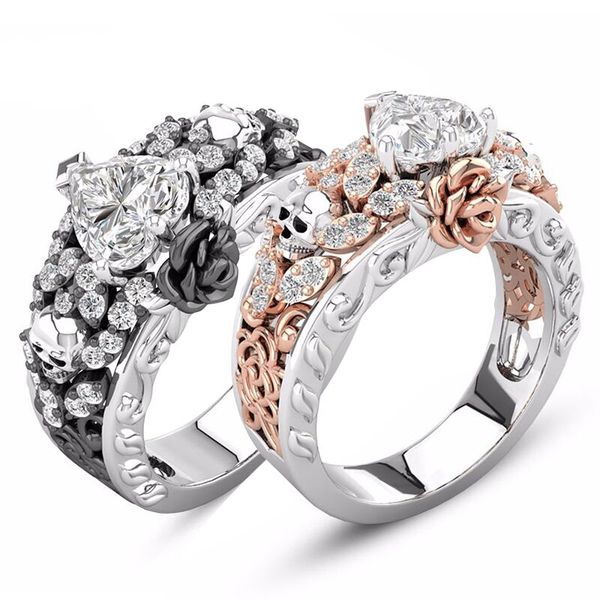 2019 Romad Austrian Gothic Skull Ring Rose Flower Style Heart Shape Cz Crystal Two Tone Wedding Rings For Women Jewelry Love Gift Z3 From Greenparty