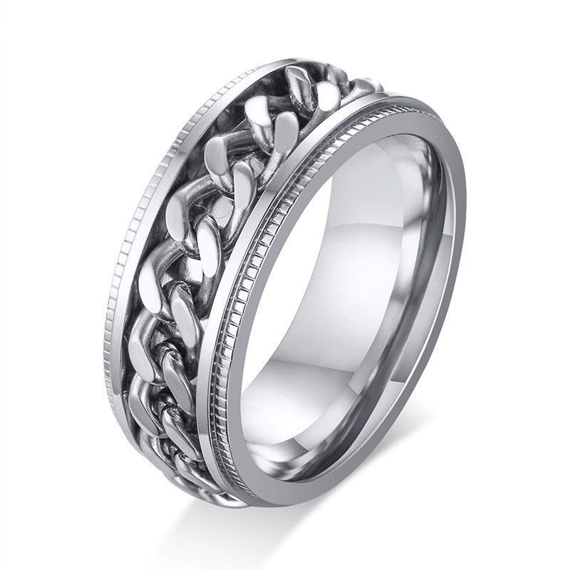 8mm Spinner Chain Unique Mens Womens Ring Textured Edge Stainless Steel Rotatable Links Casual Male Alliance Punk Anel Princess Cut Diamond Rings 2