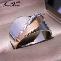 Bicolor Silver Gold Geometric Rings For Women Men Unique White Crystal Zircon Wedding Bands Big Promise Engagement Ring Jewelry
