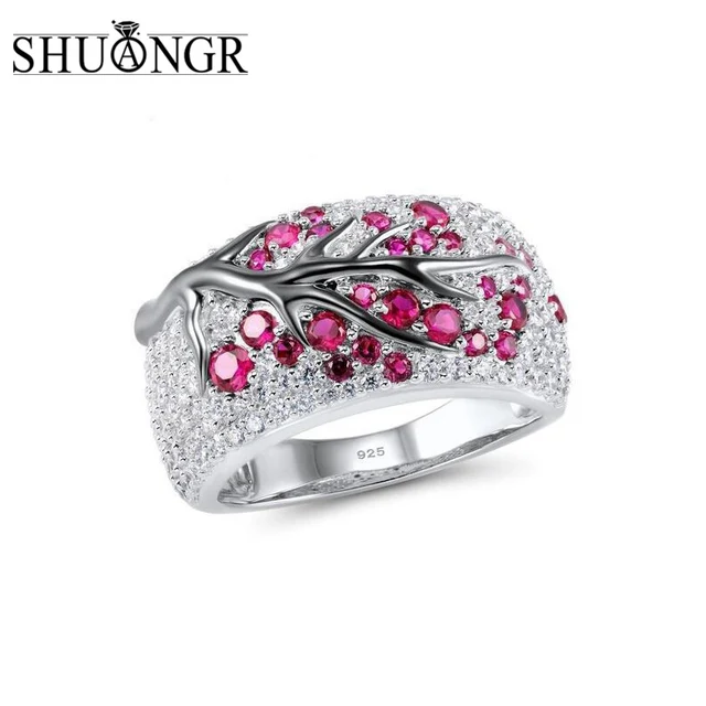 Shuangr Newest Shiny Tree Branch Ring Of Red Blue Green Purple Crystal Leaves Rings For Women Punk Branch Wedding Ring Jewelry