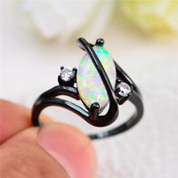 Unique Style Male Female White Fire Opal Ring Black Gold Filled Engagement Ring Vintage Cross Wedding Rings For Women