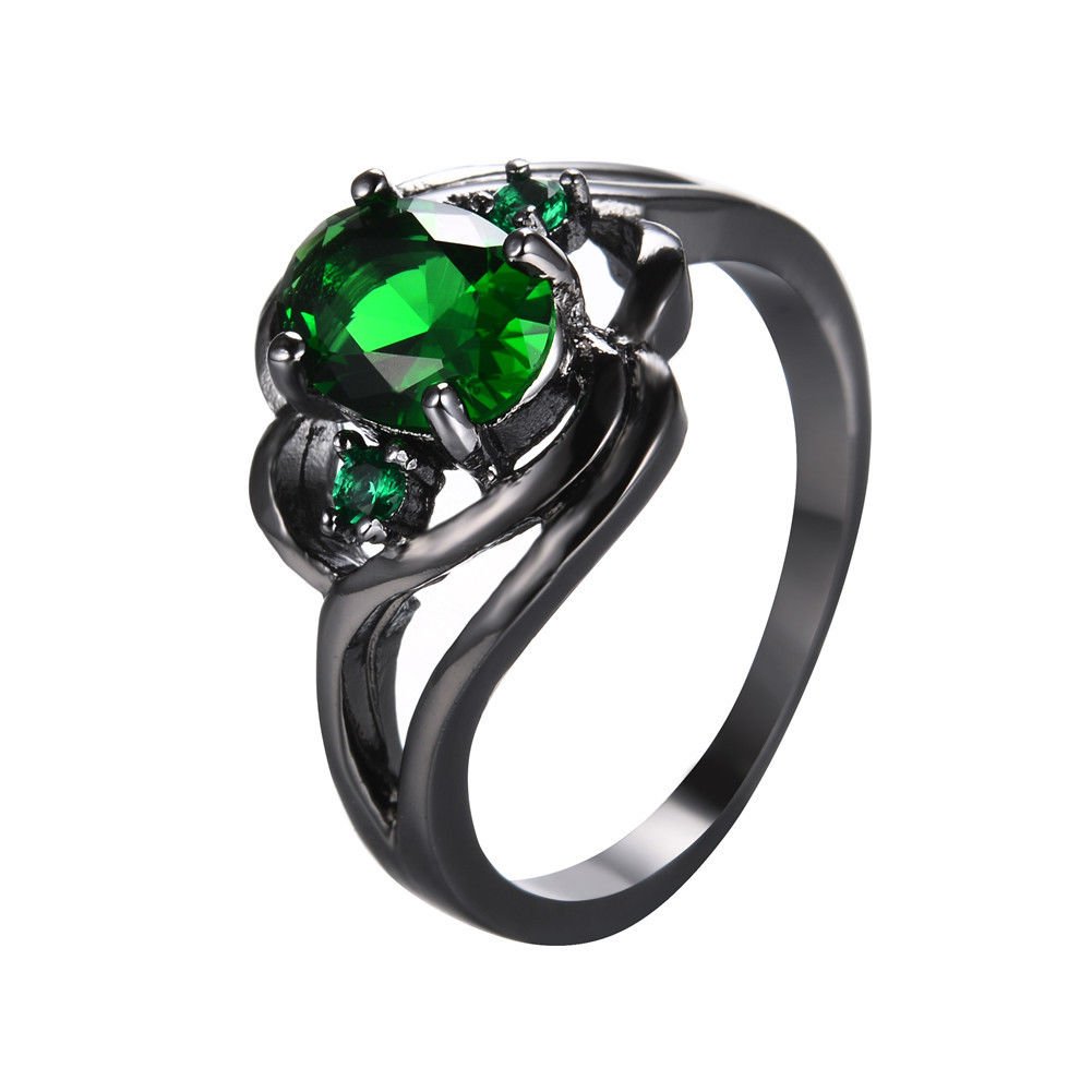 Details About Vintage Oval Green Emerald Wedding Ring 10kt Black Gold Filled Jewelry Size 9