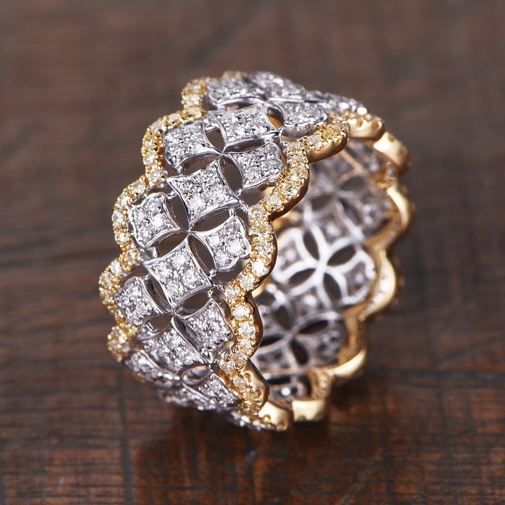 Wide White Gold Filigree Wedding Band Men Wedding Ring