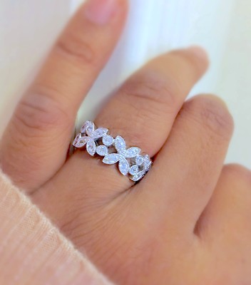 Details About 925 Sterling Silver Ladies Luxury Unique Wedding Engagement Bridal Band Ring