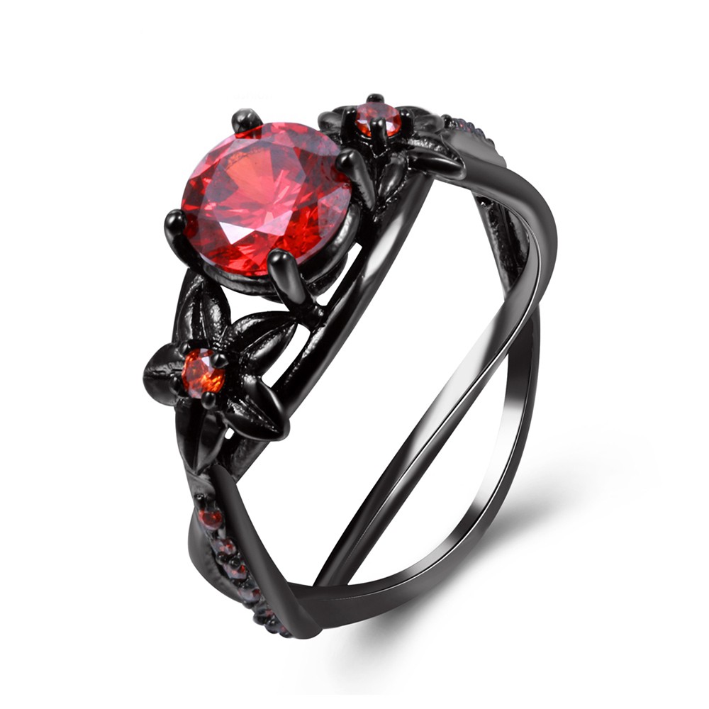 Hot Unique Flowers Red Glass Stone Gun Black Wedding Rings For Women Jewelry