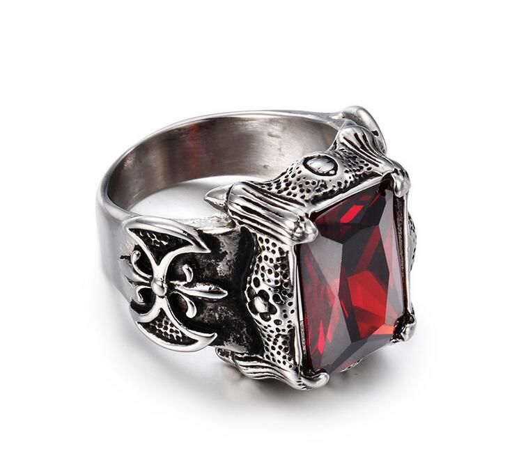 2019 Punk Cool Men S Stainless Steel Ring Dragon Claw White Blue Black Yellow Purple Red Zirconia Crystal Stone Biker Rings Jewelry Size 8 13 From