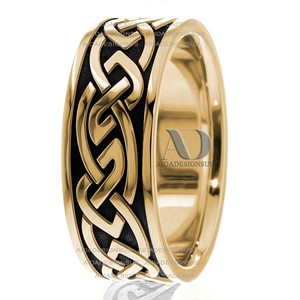 Details About Unique Celtic Men S Wedding Band Ring In Two Tone Solid 10k Gold Black Enamel