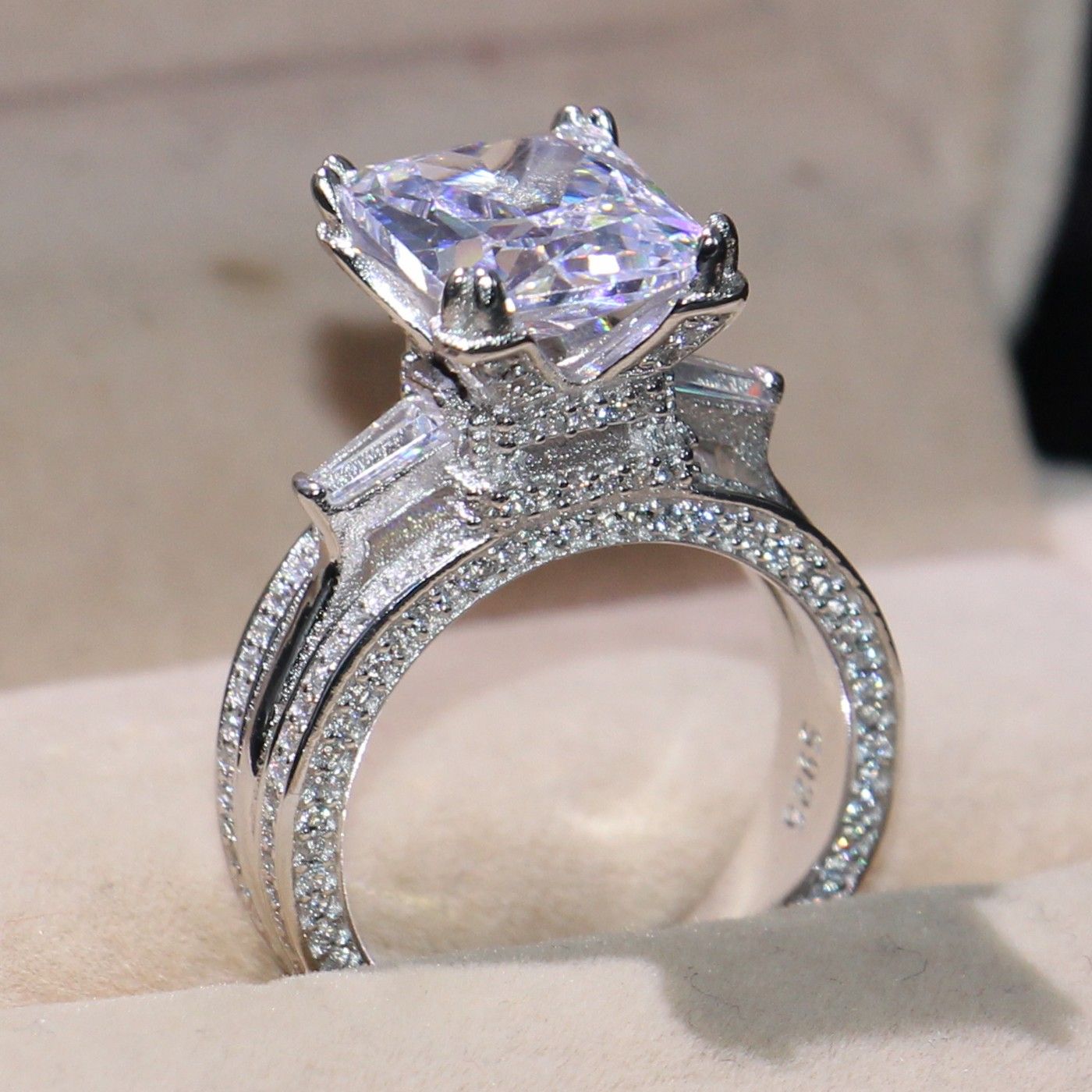 T 1 Carat 2 Carat Princess Cut Rings For Women Silver Unique