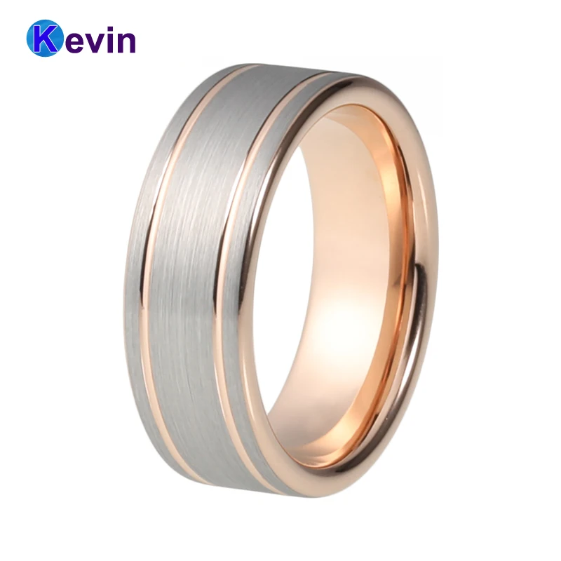 8mm Rose Gold Double Thin Groove Tungsten Carbide Rings Men Wedding Band