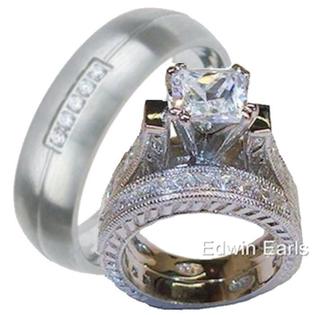 His Hers 3 5mm Titanium Cz Stone Engagement Wedding Ring