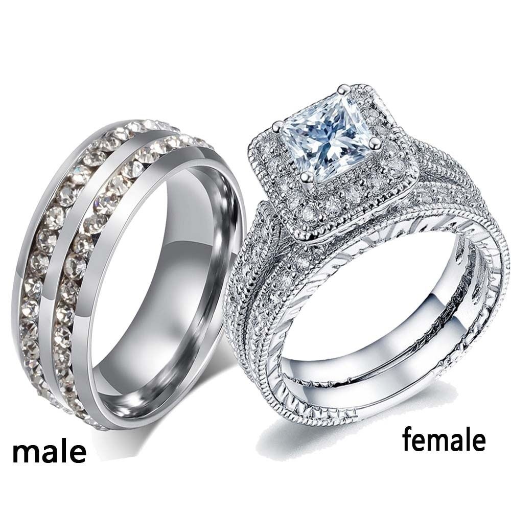 Drop Shipping His And Her 316l Stainless Steel Princess Cut Wedding Ring Sets And Eternity Wedding Band